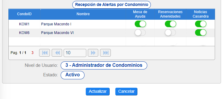 No olvides que esta configuración puede serpor condominio. También, ten en cuenta que no es posible desactivar las notificaciones de Noticias Casandra, ya que son necesarias para mantenerte informado.