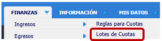 Siga el menú Finanzas - Ingresos - Lotes de Cuotas.