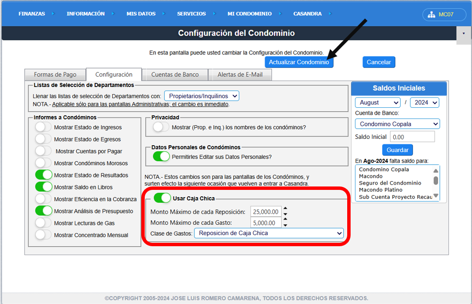 No olvides dar click en el botón “Actualizar Condominio” para guardar los cambios.