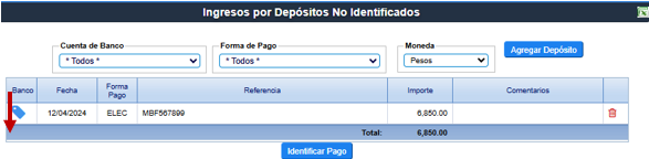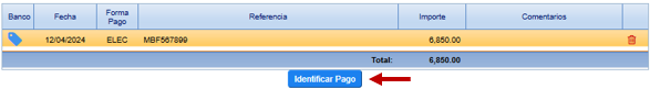 Es importante comentar que al identificar un pago, debe hacerse por el Importe Exacto, ya que no es posible aplicar parcialmente el monto acreditado.