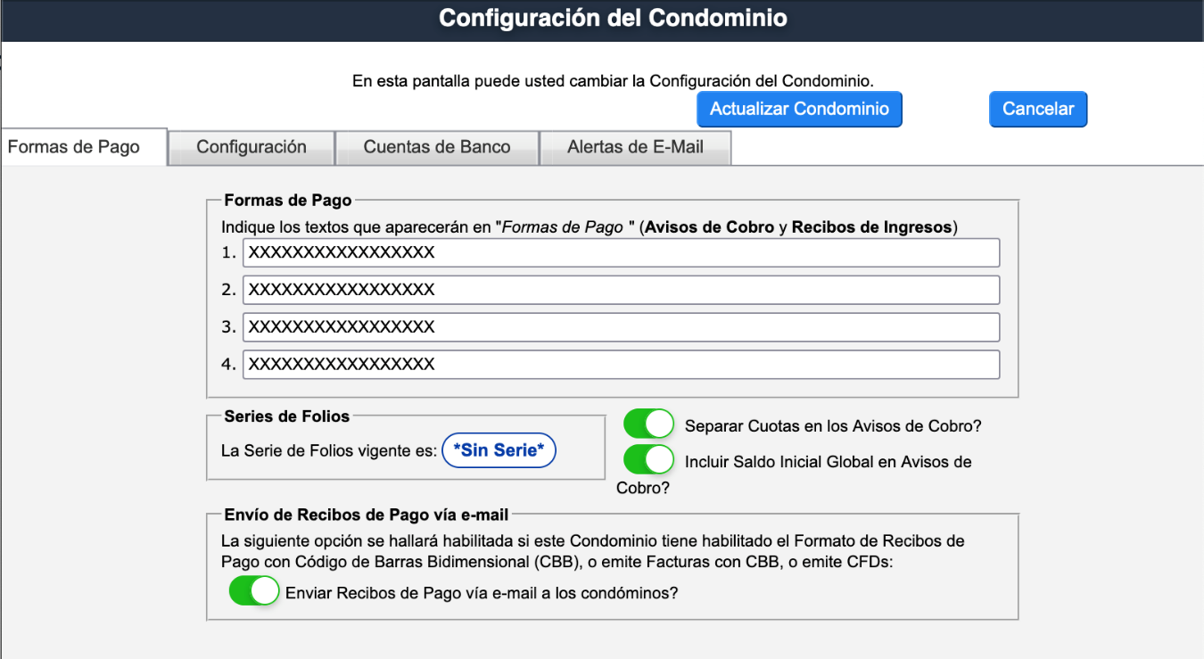 - Finalmente, guarda los cambios con el botón Actualizar Condominio.