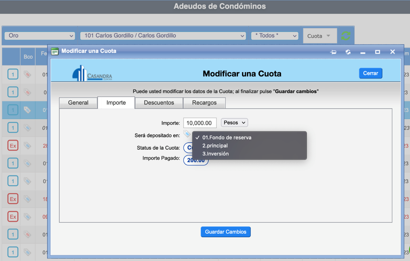 - ¿A qué Reglas de Cuotas (mantenimiento, fondo de reserva, extraordinarias, etc)?