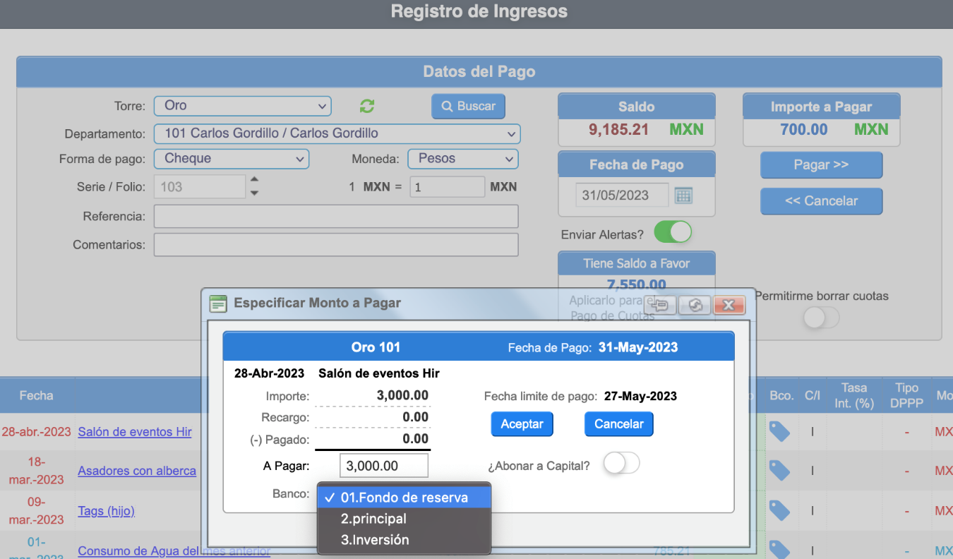 También, puedes modificar la cuenta de banco al momento de registrar el ingreso.