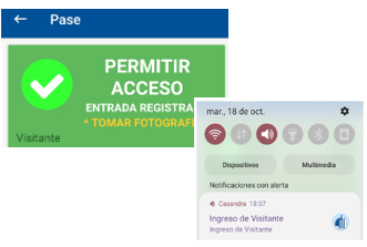 En el dispositivo, se mostrará la pantalla de Permitir Acceso, muy similar a la que muestra al leer un código QR valido. Así también, el residente recibirá una notificación emergente, avisando del ingreso.