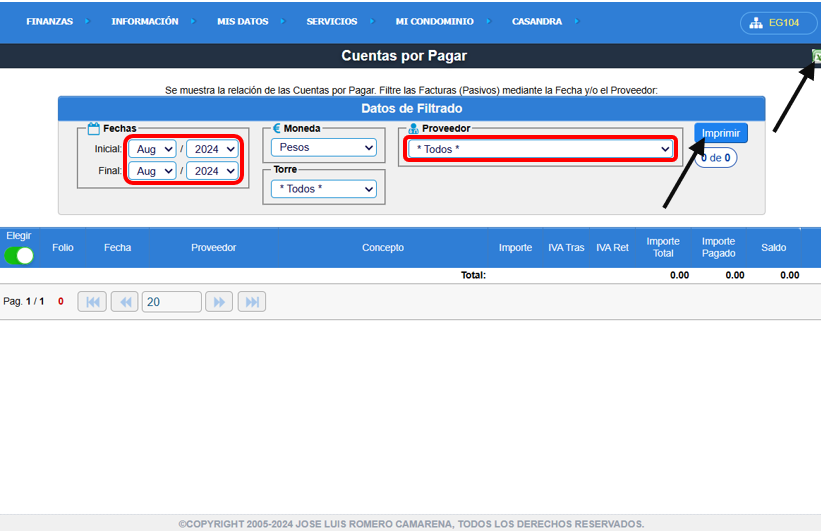 La ruta a seguir es: INFORMACIÓN - Cuentas por Pagar